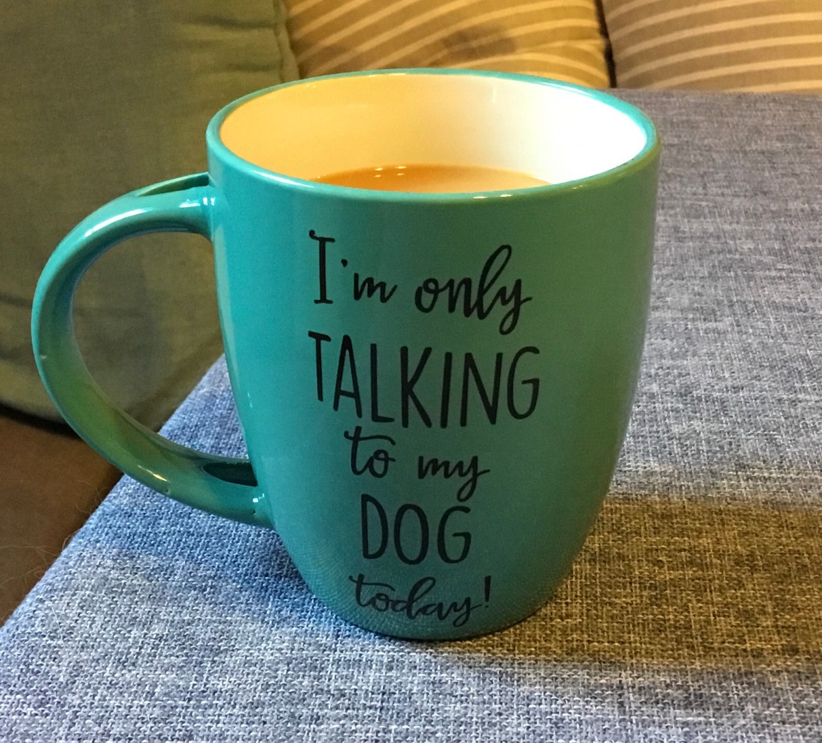 Since she doesn’t drink coffee, I can’t share today’s cuppa with her. I’ll give her a special doggie treat instead. And then we will sit on the couch, in the morning stillness, and talk – or not talk – together.